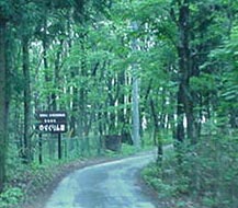 新緑のくぬぎ林の中に立つ、らくりん座の稽古場「那須野舞殿」