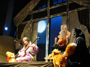 「おこんじょうるり」の三味線の音が聴こえてきた。