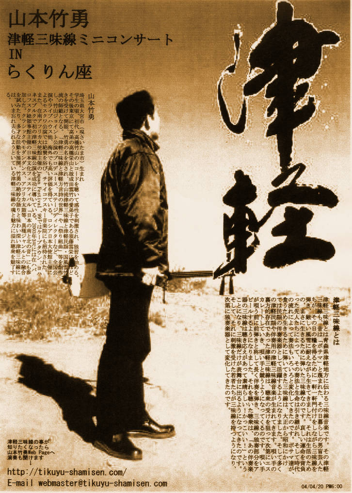 お芝居のタイトルは「おこんじょうるり」なのだが、音楽は恐山をイメージした津軽三味線なのだ。